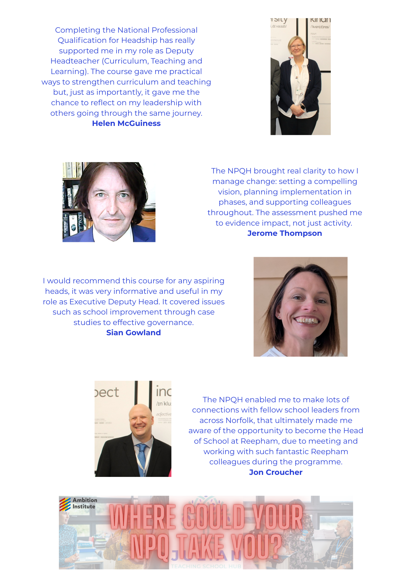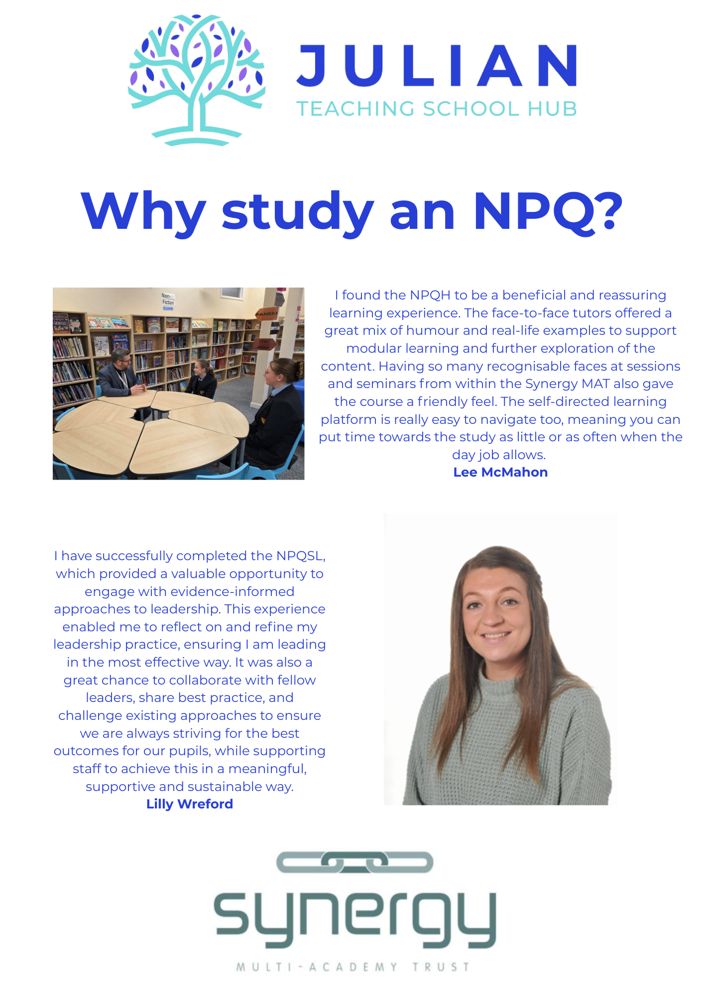 The Julian TSH is delighted to be partnering with Ambition Institute to deliver our NPQs.